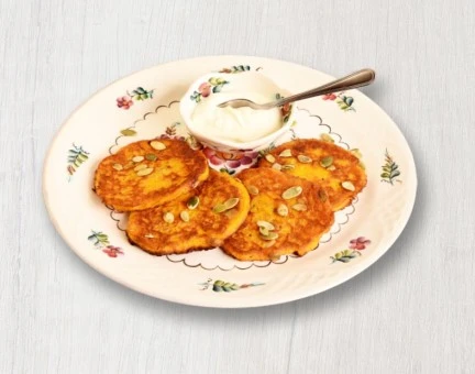 Pumpkin fritters with sour cream